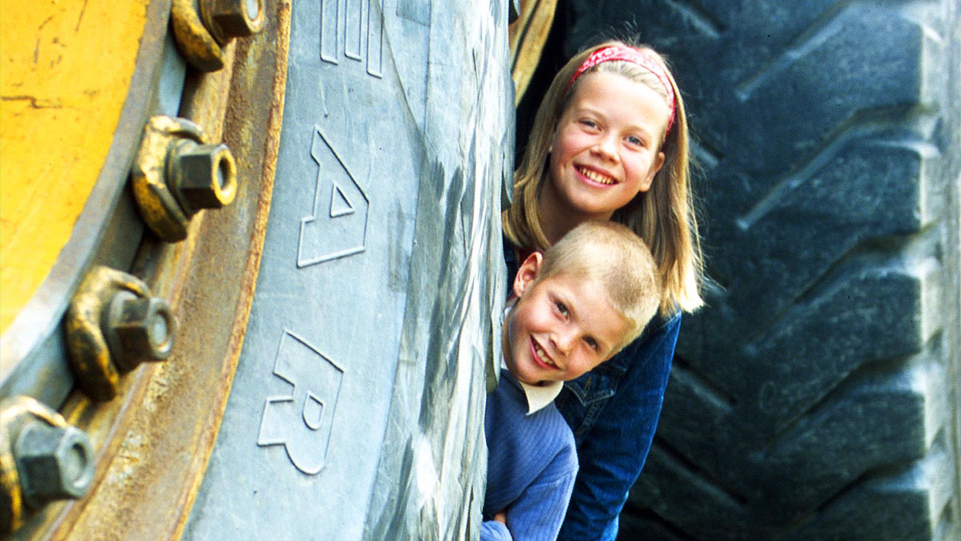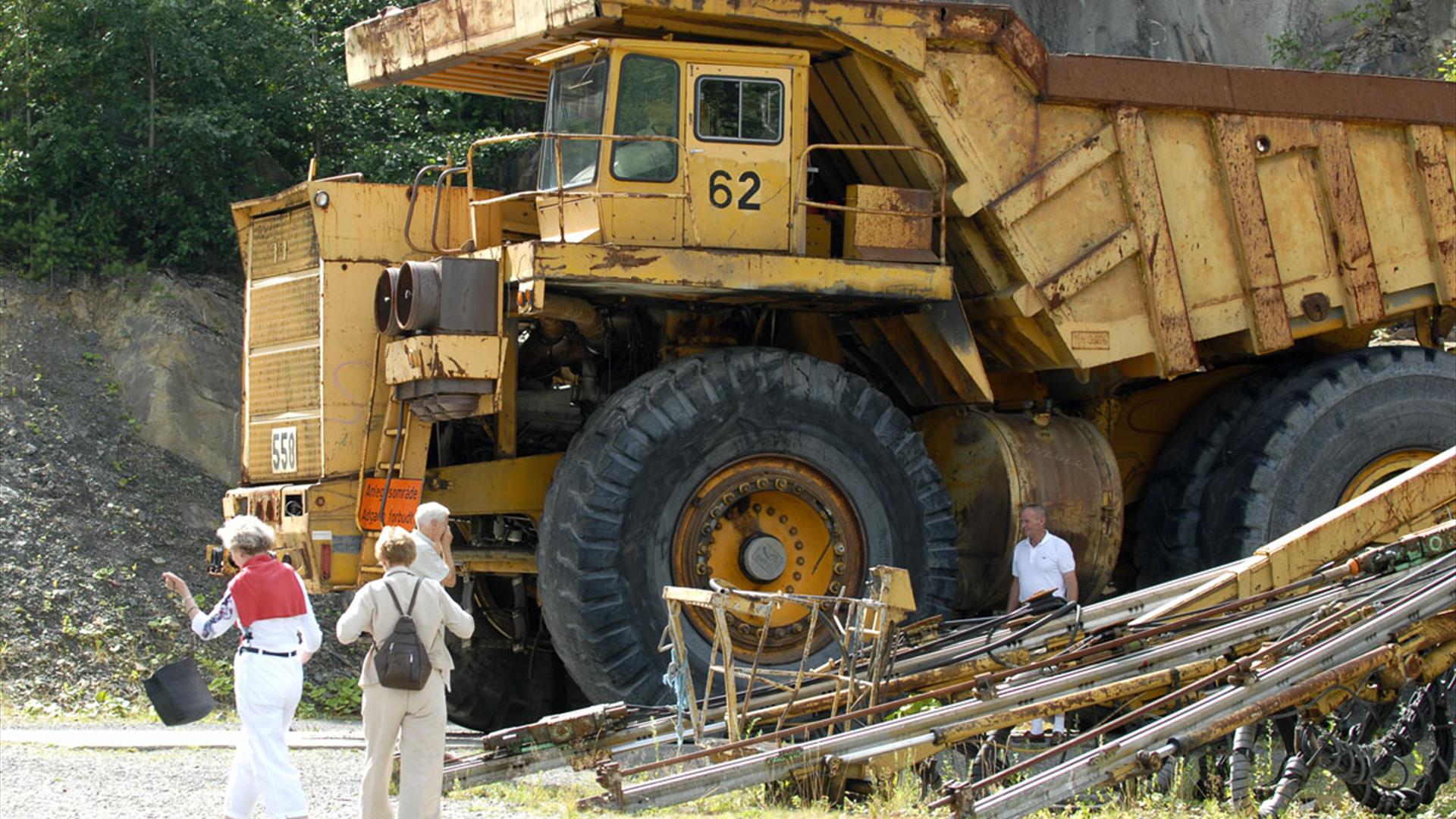 Am Eingang befinden sich Lokomotiven, riesige Muldenkipper und ein 7 m hoher Bagger mit einem Gewicht von 218 t!