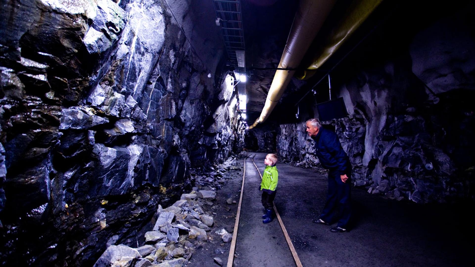 Etwas weiter erwartet den Besucher der 245 m lange Tunnel, der in den Berg führt. Im Stollen tropft das Wasser von der Decke und es wird die interessante Geschichte über Gebirgssprengungen in Norwegen erzählt. Werkzeuge und Maschinen, beeindruckende Fotos und die faszinierende Beleuchtung bringen Leben in die Geschichte über Bergbau, Wasserkraft, Straßen und Eisenbahn vom 16. Jh. bis heute. In sicherer Umgebung erleben Sie die Geräusche, Temperatur und natürlich auch die dunklen Ecken und Verstecke im Innern des Urgesteins.