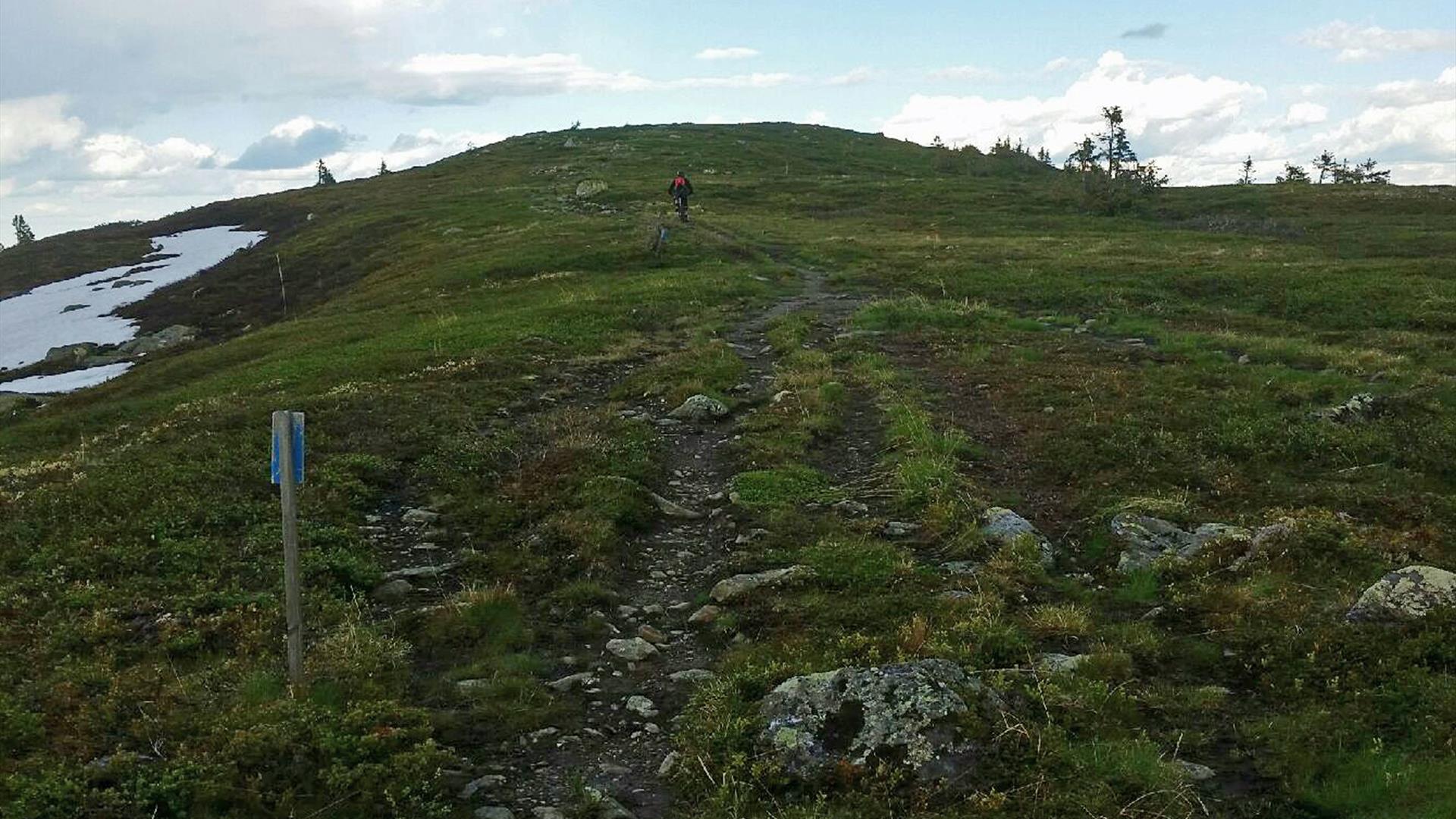 Start at Sjusjøen Mountain Bike Park in Natrudstilen. Follow the marked trail towards "Brannhytta" via Rømåsen. You can also start at the parking lot in the end of the road "Utsiktsveien". Follow a wide, clearly visible track in about 1 km. Take the track down to the left towards "Leindalen". (If you want to try the famous cinnamon buns at Brannhytta, follow the trail straight ahead for 1 km.) From Leindalen, follow the track up to Sollifjell (Will require some walking with the bike). Follow the track over Sollifjell and Mostfjellet towards the lake Gulbrandstjernet. Continue towards Snørrvillen and stay on the track all the way over the top, into an exciting descent towards Kopnaglen. When you reach the gravel road, go left and continue until you reach Gjestbodsåsen. Take a left again, on the track to Kuåsen, Follow the road back to Sjusjøen MTB park.