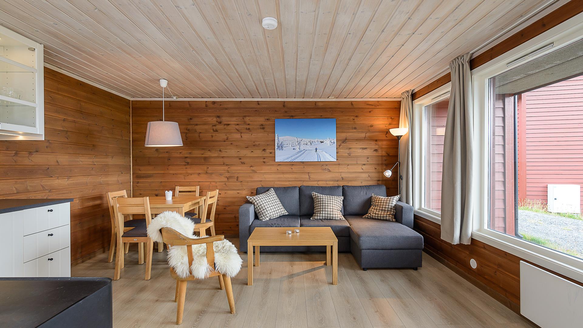 Die Apartments haben zwischen einem und 3 Schlafzimmer, sind komplett mit Kissen und Bettdecken, Esszimmerecke, Stube mit doppeltem Schlafsofa, Kaminofen, LCD-Kabelfernsehen und Kissen für 5 Personen ausgestattet. Offene Kochecke mit 2 Kochplatten, Kühlschrank, Backofen, Toaster und Kaffeemaschine, Waschmaschine, Dusche und Toilette mit Fußbodenheizung und eigener Sauna.